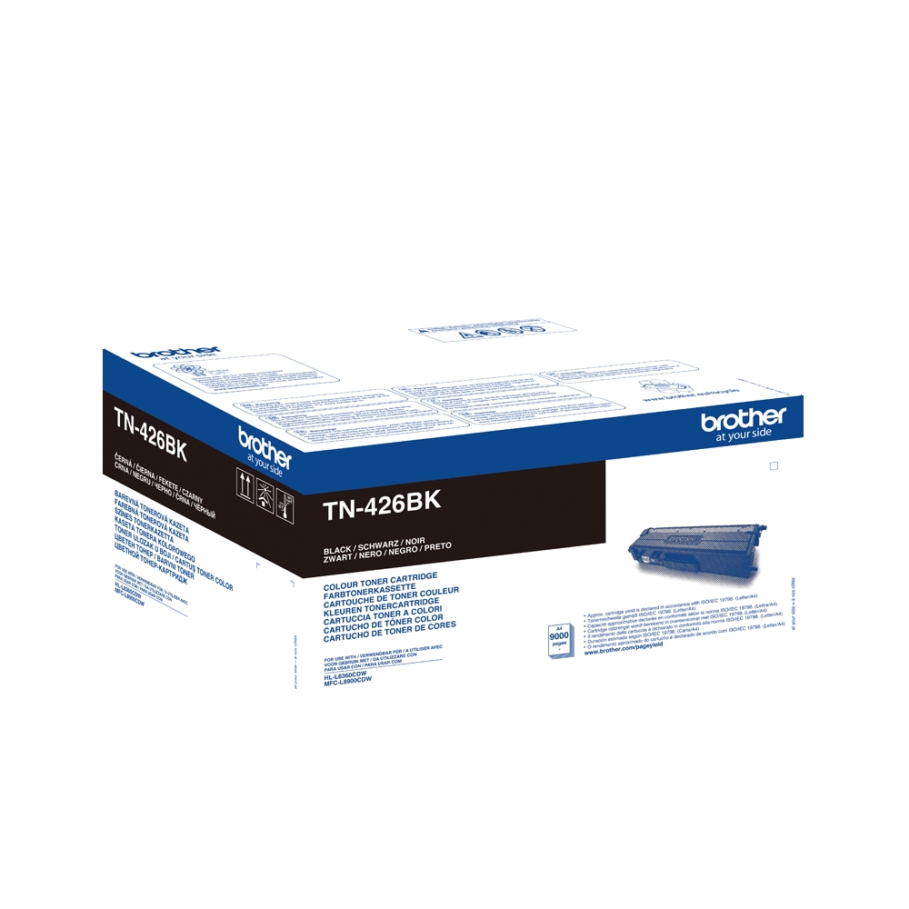 Brother TN-426BK е оригинална тонер касета черен цвят с капацитет до 9 000 страници в съответствие с ISO/IEC 19798. Единствено ползването на оригинални тонер касети за устройствата с цветен печат ще гарантира постоянното безупречно качество на печат и дългия живот на устройството Ви. Използването на оригинална тонер касета Brother TN-426BK ще доведе до спестяване на време и разходи за отстраняване на неизправности в устройството поради ползване на неоригинални консумативи. Оригинална тонер касета Brother TN-426BK черен цвят е подходяща за използване в следните Brother принтери и мултифункционални устройства:
